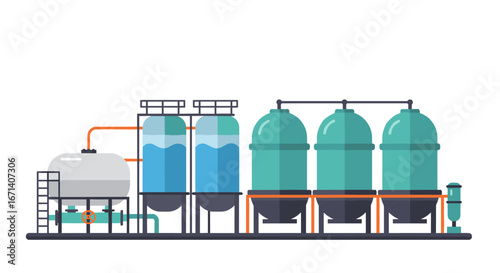 Industrial water treatment facility in flat design