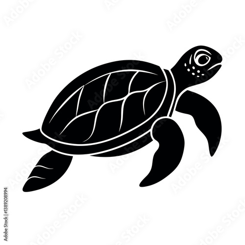 Sea turtle vector illustration, black and white turtle silhouette, marine life graphic, ocean wildlife art, turtle shell pattern design