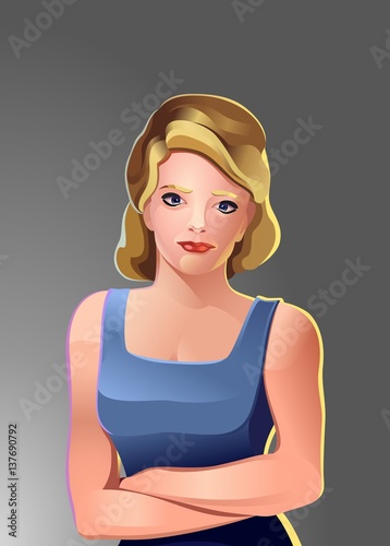 векторная иллюстрация.блондинка  девушка.бирюзовом свитере