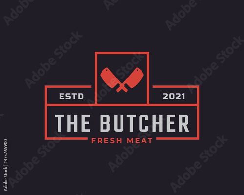 Classic Vintage Retro Label Badge for Butcher Shop with Crossed Cleavers Logo Design Inspiration
