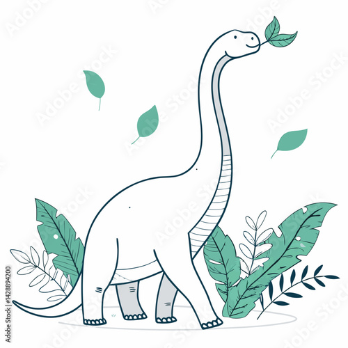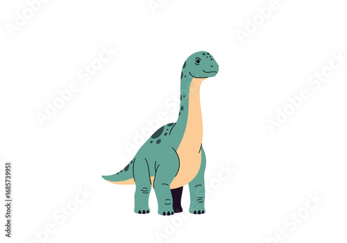 Cute brachiosaurus with long neck and light blue body, brachiosaurus illustration radiating gentle prehistoric charm, ideal for nursery prints, educational designs, toys, posters and children art.