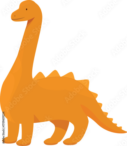 Cute cartoon dinosaur character illustration, smiling blue brachiosaurus for kids, educational prehistoric animal, isolated vector design for learning