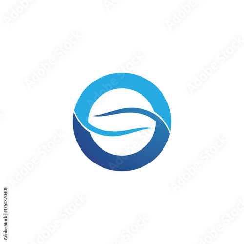 Vector flat touristic company logo design isolated on white background. Travel agency emblem sign. Blue water wave symol, icon. Sea tours logotype. Ocean cruise.