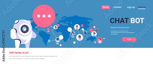 chatbot robot speech bubble people avatar global communication chat bot connection artificial intelligence concept man woman faces flat horizontal copy space vector illustration