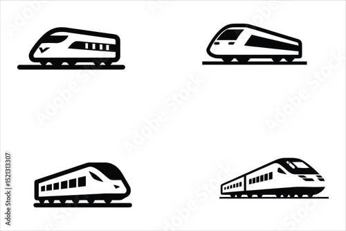 Collection of various high-speed train silhouettes and icons, showcasing different designs and perspectives.