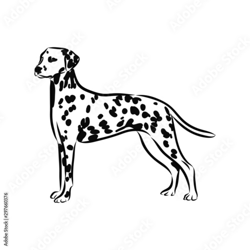 Dalmatian dog breed line drawing, clip art animal hand drawing vector black and white realistic breed pet