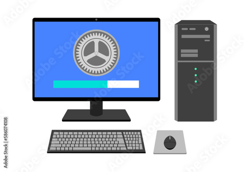 Illustration of desktop computer and keyboard and mouse