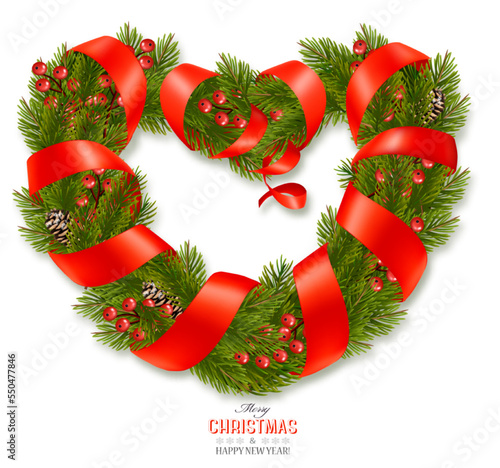 Christmas retro background with tree branches. Vector.