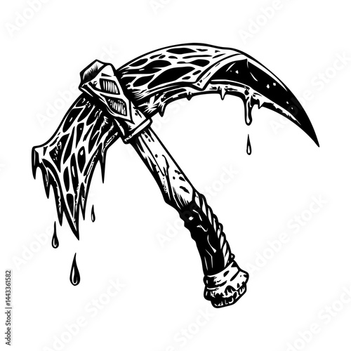 Intricate engraved art of skeleton hand holding rose for gothic and halloween themes