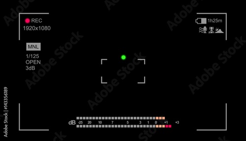 Camera viewfinder. Viewfinder camera recording. Video screen on a black background. vector illustration