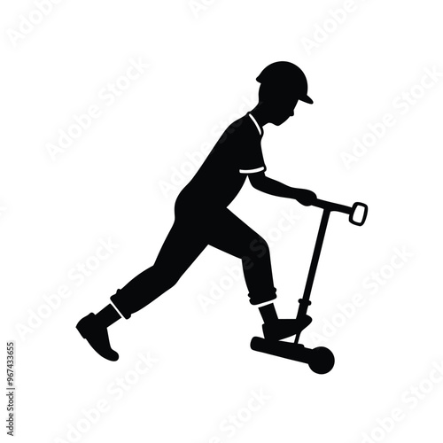 Kick scooter rider silhouette, child riding push scooter outdoor activity vector illustration isolated design concept