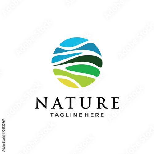 Nature creative symbol. Field bio plantation, eco green farm concept.