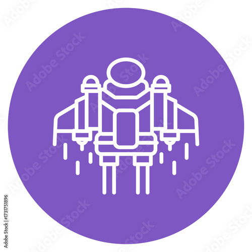 Jetpack icon. water sport activity on beach with jet backpack symbol. Air fly transportation booster vector. Space craft futuristic propulsion device sign.