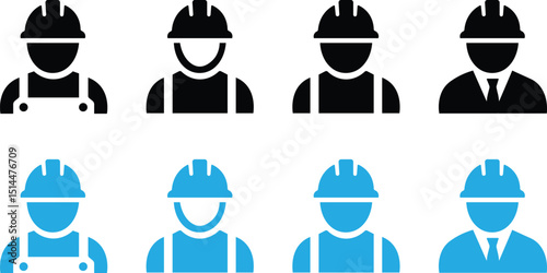 Construction worker silhouette vector icons for labor, industry, safety, and professional occupation design projects
