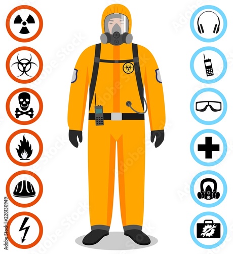Man in protective hazmat suit