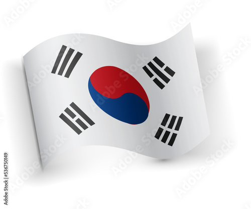 Wave flag of  South Korea on white background.