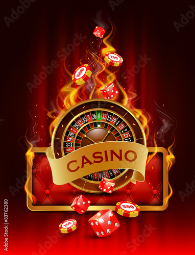 Vector illustration gambling roulette wheel isolated on gambling chips explosion background.
