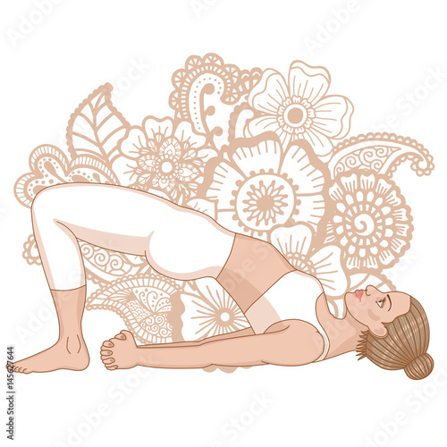 Girl in yoga pose sarvangasana. Vector illustration