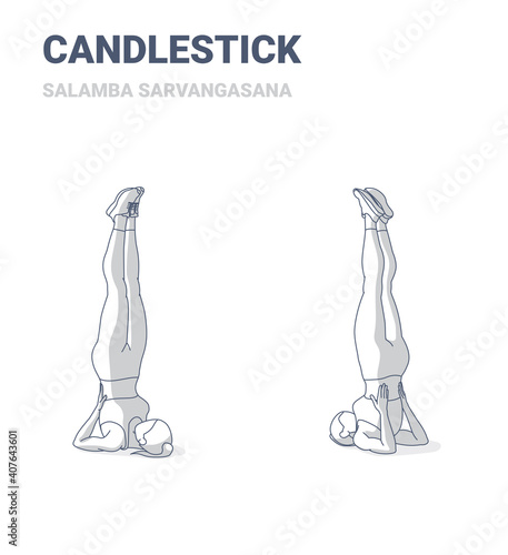 Yoga sarvangasana pose candlestick asana vector illustration