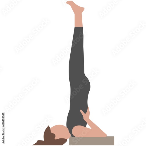 Sarvangasana or Shoulder stand yoga pose. Yoga Fitness Concept. Illustration Of Woman doing yoga.