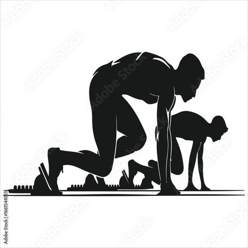 Running athlete silhouettes, sprint start poses, fitness motion vector, sports action figures, athletic running, workout positions, dynamic movement, sprinting man, fitness exercise,