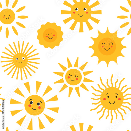 Sun emoji. Funny summer sunshine, sun baby happy morning emoticons. Cartoon sunny smiling faces vector icons. Illustration of sun heat, emoji and emotion mascot
