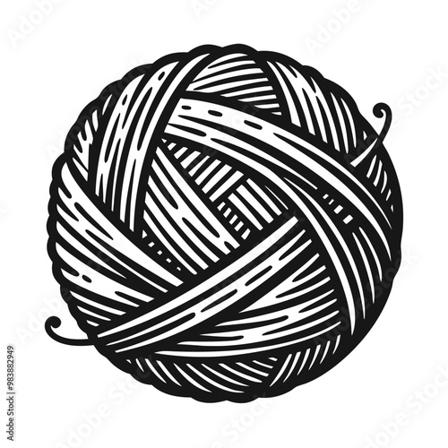 Hand drawn wool yarn ball