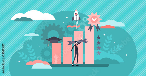 Professional development as personal skills training tiny person concept. Education for ability growth and career improvement with studying vector illustration. Specialist job potential progress.