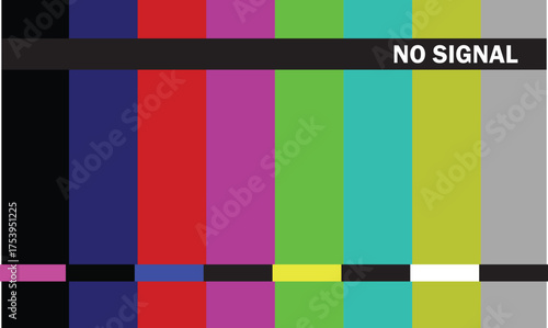 Vibrant off air signal pattern, broadcasting outage, television error screen, communication failure, retro test card, colorful bars for digital media