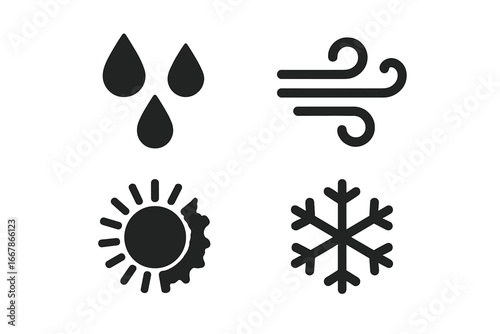 Eco and environmental icon set highlighting sustainability, biodiversity, and climate data