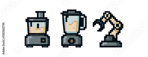 Set of robotic arms. Robotic arm manufacture. Cartoon style icon. Vector illustration isolated on white background