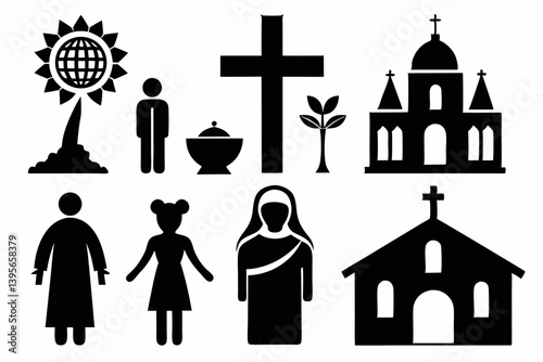 Religious Icon Set. A meaningful collection of icons representing various faiths and beliefs, perfect for enhancing educational materials, spiritual apps, and community outreach initiatives.