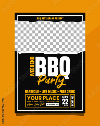 Summertime BBQ Party Portrait flyer, bbq invitation poster vector template design