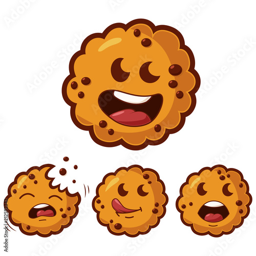Cute cartoon cookies with different emotions vector icons set. Illustration of a funny biscuit character with chocolate isolated on white background.