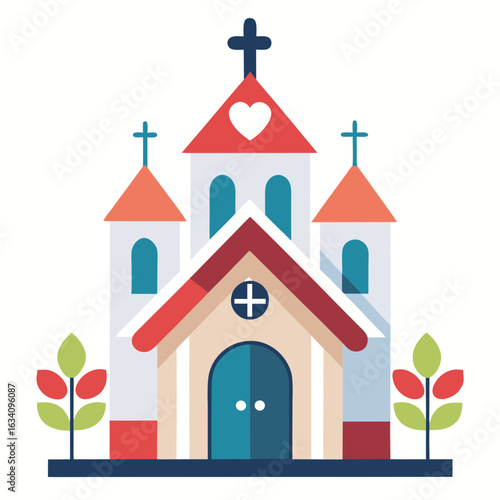 Illustration of a charming church with a heart, isolated on white background