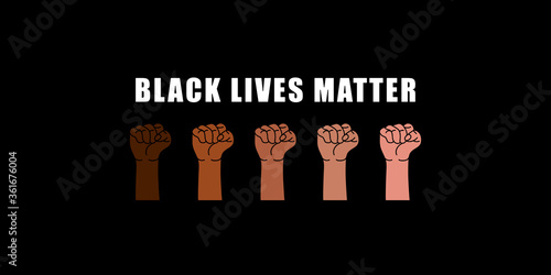 Black Lives Matter raised fist vector illustration. Symbol of protest, activism, and fight for equality. Social justice movement graphic. Anti-racism human rights solidarity design.