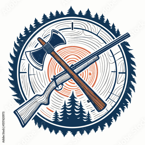forest and lake campground illustration landscape, artwork for t-shirt printing