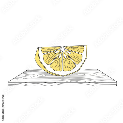 Vivid vector illustration showcasing a bright yellow lemon wedge, embodying freshness and citrusy zest with detailed segments and a clean, white background
