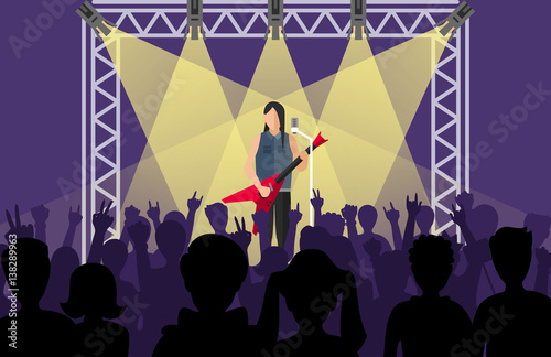 Silhouette of crowd audience on a concert, music show, sport arena.