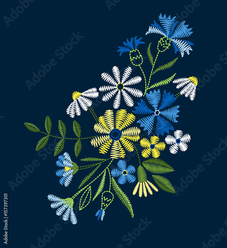 Decorative ornament for border of fabric. Stylized texture of embroidery, imitation satin stitch. Vector pattern for printing on fabric, clothes, hem of dress, cuff, collar.