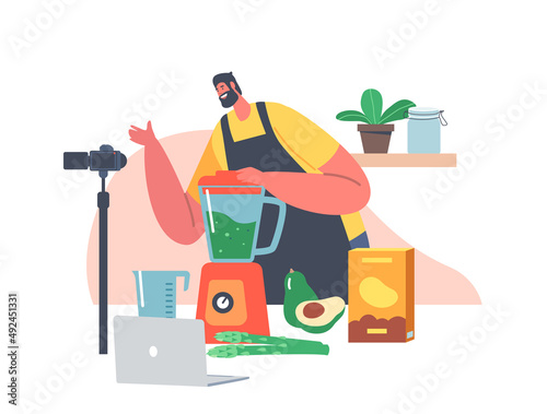 Food Blogger Characters Create Content. Man Woman Cooking and Recording Culinary Video for Blog or Channel, Courses