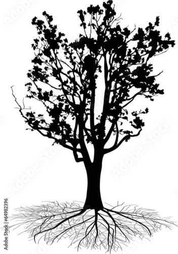 Silhouette of a deciduous tree vector illustration of a tree with branches and leaves isolated on white background