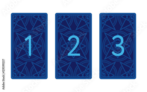 Three card tarot spread. Reverse side. Number 1, 2, 3. Vector illustration