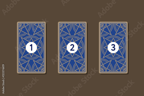 Three card tarot spread. Reverse side 1, 2, 3 numbers