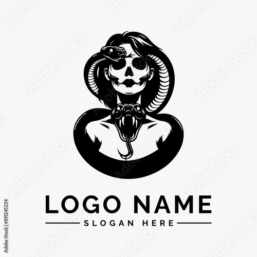 Vector image of a sorcerer with snakes. The sorcerer holds a magic ball in his hands. Image on a background of lightning.