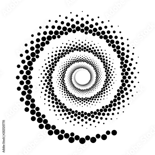 Halftone circle frame, abstract dots logo emblem design element for any project. Round border icon or backgroud. Vector EPS10 illustration. Abstract dotted halftone vector with differents perspective
