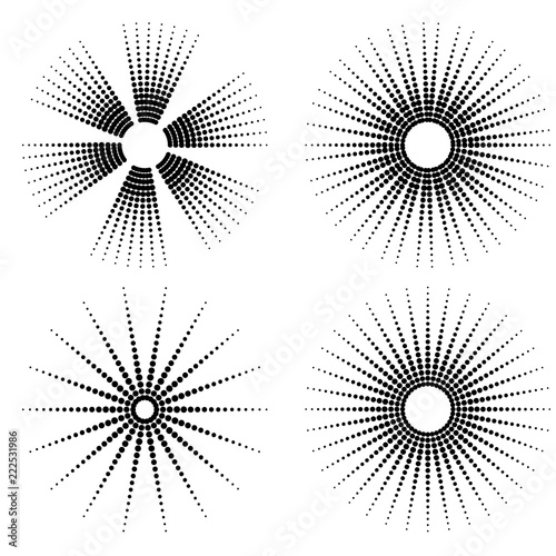 round Logo . Circular Design element . Abstract Geometric half tones . Sunburst