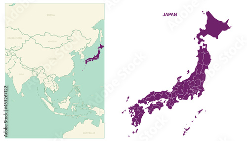 Russia region silhouettes set and blank map of the country isolated on white background. Vector illustration design