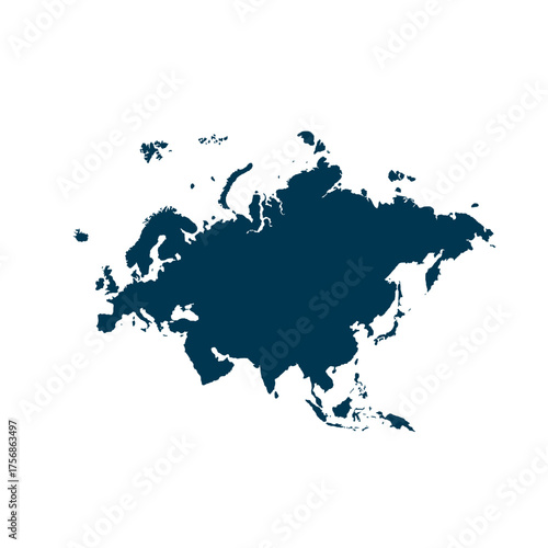Map of Eurasia, sign silhouette. World Map Globe. Vector Illustration isolated on white background. Europe and Asia continent.