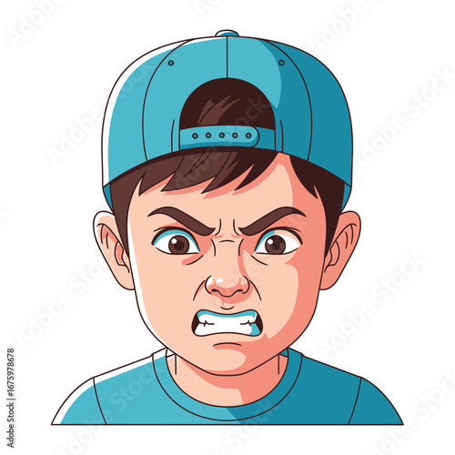 Cartoon illustration of an angry young boy shouting with a frustrated expression and raised hands, showing distress.